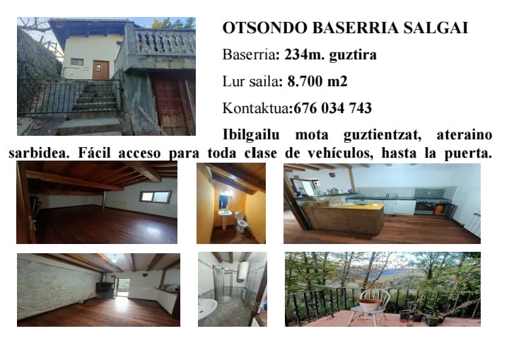 8.700 metro karratuko lursailarekin eta baserriko ateraino, ibilgailu mota guztientzat sarbidea.